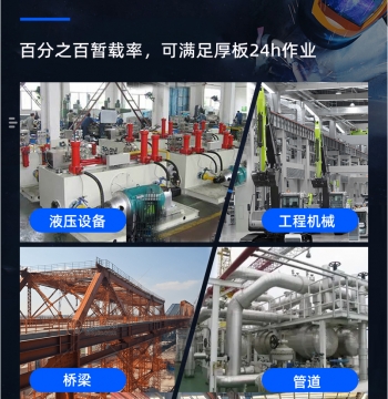 广泛应用于碳钢、不锈钢、铝及铝合金的高效半自动焊接。应用场景:工地工程户外安装,高空作业焊接以及10毫米以内五金件加工制造业。